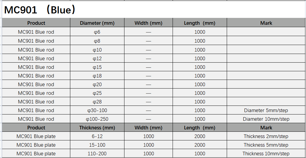 MC901 (Blue): This modified nylon 6 has an eye-catching blue color and is more ductile, flexible, and fatigue resistant than ordinary cast nylon, proving to be an ideal material for gears, racks, and transmission gears